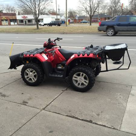 2009 polaris 550xp sportsman has had all fluids changed and brakes has had new plow and salter and new winch. comes with custom made ramps. asking 5900.00 or best offer no reasonable offer refused